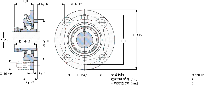 SKF FYC 25 WF轴承尺寸图纸