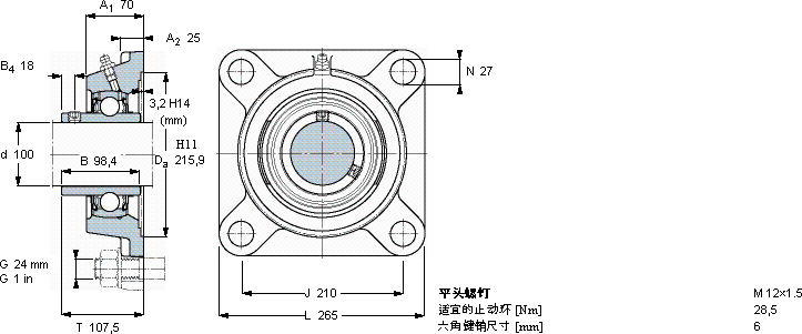 SKF FYJ 100 TF轴承尺寸图纸