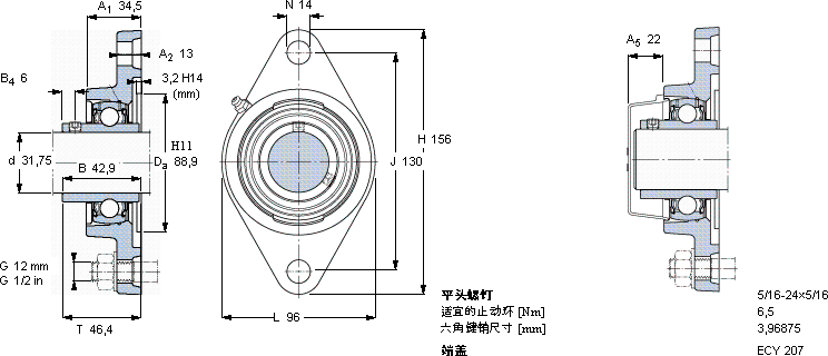 SKF FYTB 1.1/4 TF轴承尺寸图纸