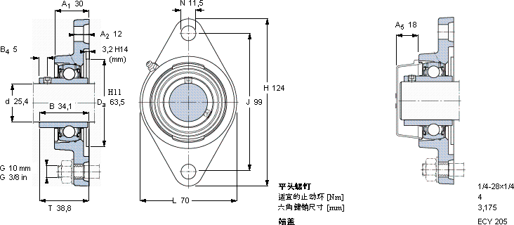 | Y-型轴承带法兰单元, 椭圆形铸造轴承座,平头螺钉锁定, 英制轴承 | ||||||||||||