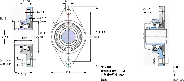 SKF FYTB 45 TR轴承尺寸图纸