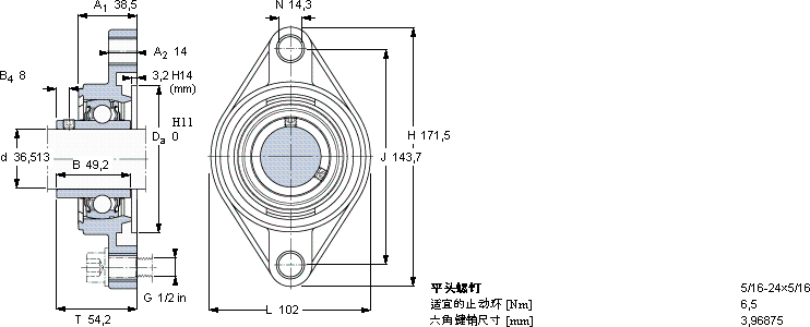 SKF FYTM 1.7/16 TF/AH轴承尺寸图纸