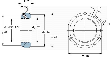 | 30 | 44 | 20 | M 30x1.5 | 160 | 0,16 | KMT 6 | HN 7 | M 6 | 8 | |
