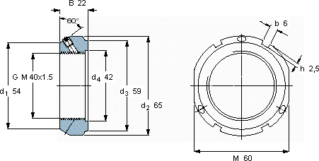| 40 | 59 | 22 | M 40x1.5 | 210 | 0,30 | KMT 8 | HN 8-9 | M 8 | 18 | |