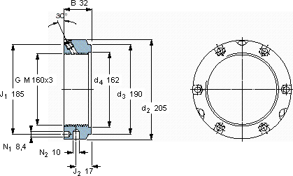 | 160 | 190 | 32 | M 160x3 | 1100 | 3,15 | KMTA 32 | B 205-220 | M 10 | 35 | |