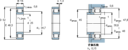 N 205 ECP轴承-SKF N 205 ECP轴承尺寸、图纸、价格