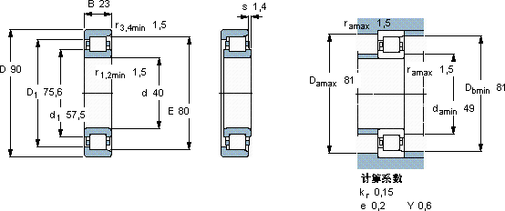 SKF NF 308 ECP *轴承尺寸图纸