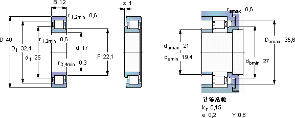 SKF NJ 203 ECML轴承尺寸图纸