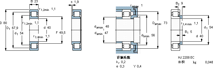 SKF NJ 2208 ECP *轴承尺寸图纸