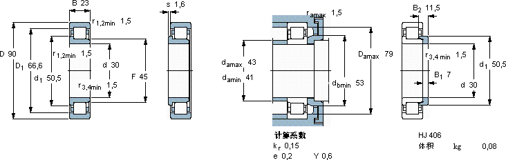 SKF NJ 406 MA轴承尺寸图纸