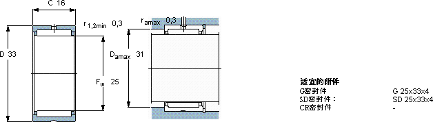 NK 25/16轴承-SKF NK 25/16轴承尺寸、图纸、价格