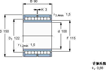 | 圆柱滚子轴承, 多列满装滚子 | ||||||||||