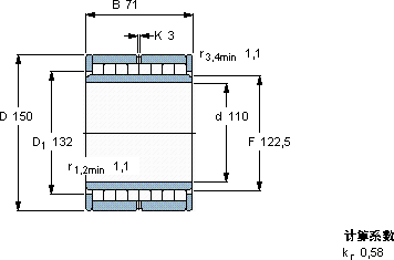 | 圆柱滚子轴承, 多列满装滚子 | ||||||||||