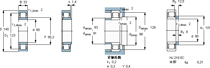 NU 2216 ECJ *轴承-SKF NU 2216 ECJ *轴承尺寸、图纸、价格