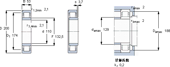 NU 2222 ECN1ML *轴承-SKF NU 2222 ECN1ML *轴承尺寸、图纸、价格
