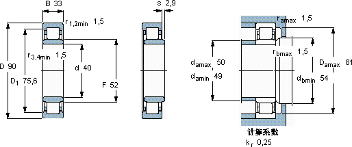 NU 2308 ECML *轴承-SKF NU 2308 ECML *轴承尺寸、图纸、价格
