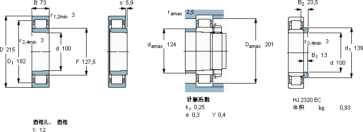 NU 2320 ECKML *轴承-SKF NU 2320 ECKML *轴承尺寸、图纸、价格