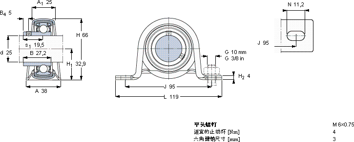 | Y-型立式轴承座单元, 冲压钢轴承座,平头螺钉锁定, 公制轴承 | |||||||||||||