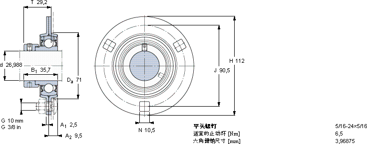 SKF PF 1.1/16 FM轴承尺寸图纸