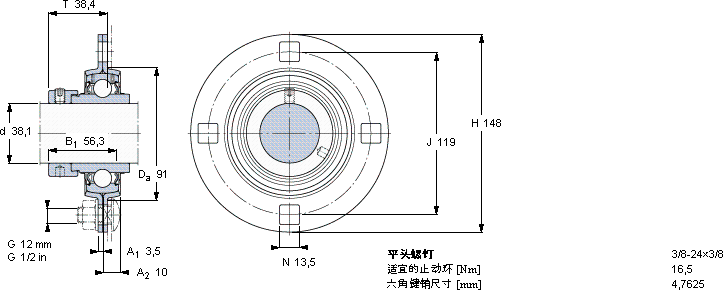 SKF PF 1.1/2 WF轴承尺寸图纸