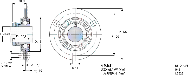 PF 1.1/4 FM轴承-SKF PF 1.1/4 FM轴承尺寸、图纸、价格