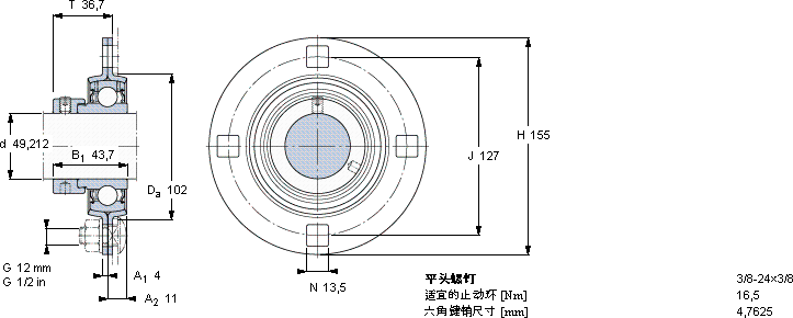 SKF PF 1.15/16 FM轴承尺寸图纸