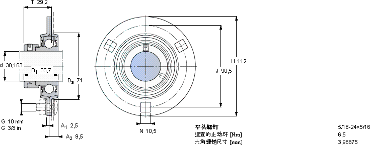 SKF PF 1.3/16 FM轴承尺寸图纸