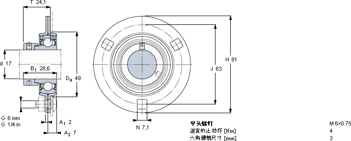 SKF PF 17 FM轴承尺寸图纸