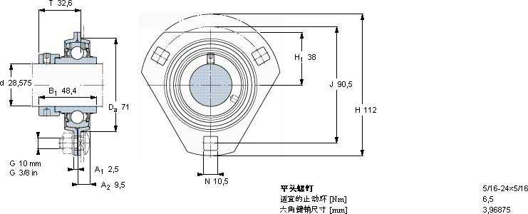 | Y-型轴承带法兰单元, 冲压钢轴承座,偏心锁定轴环 | ||||||||||||