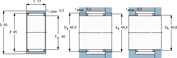| 40 | 50 | 17 | 20,5 | 41,5 | 5 | 10000 | 12000 | 0,074 | RNAO 40x50x17 | |
