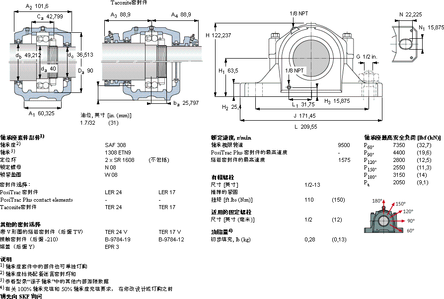 SAF 1308轴承是【SKF轴承 > 轴承座 > SAF立式轴承座】的型号,主要用在飞机喷气式发动机、小型汽车前轮、变速器、差速器、铁路车辆车轴、汽车转向销、燃机、塑料、土方机械、厨具设备等各大领域。