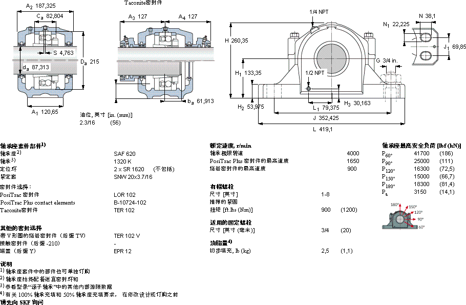 型号基本负荷额定值,主要数据尺寸迷宫密封件PosiTrac 密封件PosiTrac Plus密封件Taconite密封件