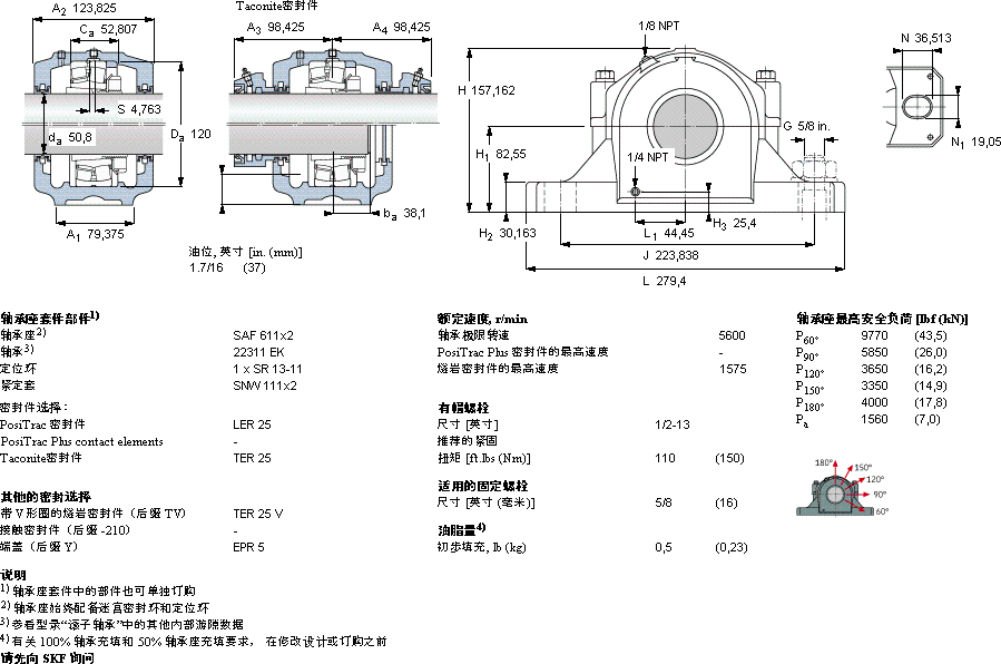 型号基本负荷额定值,主要数据尺寸迷宫密封件PosiTrac 密封件PosiTrac Plus密封件Taconite密封件