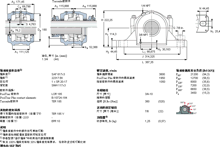 型号基本负荷额定值,主要数据尺寸迷宫密封件PosiTrac 密封件PosiTrac Plus密封件Taconite密封件