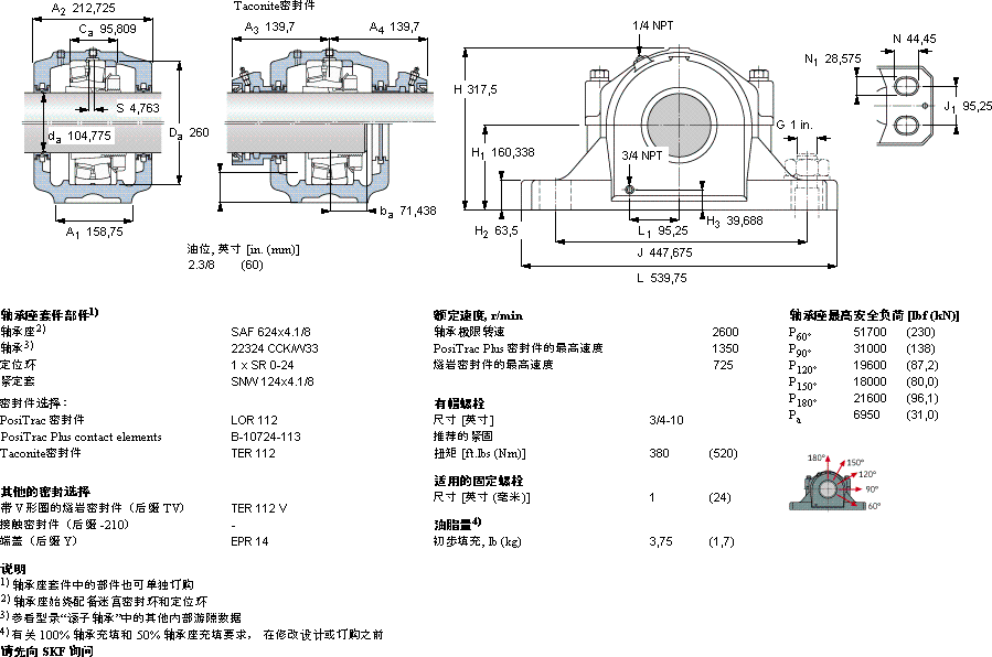 型号基本负荷额定值,主要数据尺寸迷宫密封件PosiTrac 密封件PosiTrac Plus密封件Taconite密封件