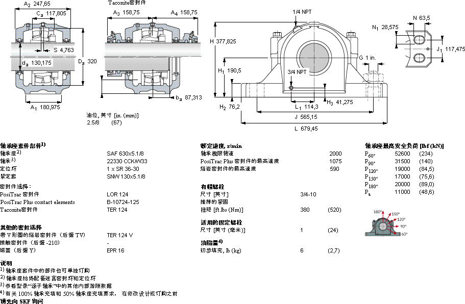 SAF 22630x5.1/8轴承-SKF SAF 22630x5.1/8轴承尺寸、图纸、价格