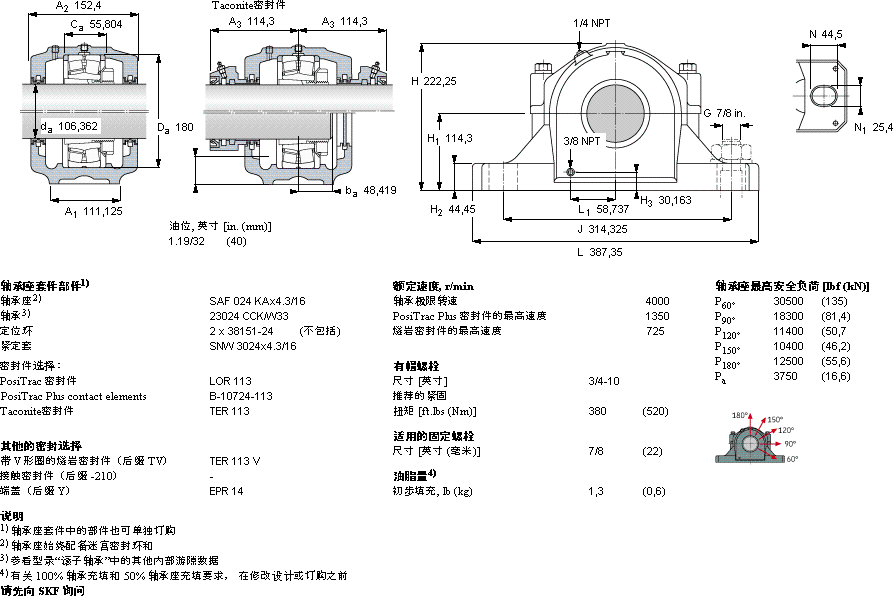 SKF SAF 23024 KAx4.3/16轴承详细参数