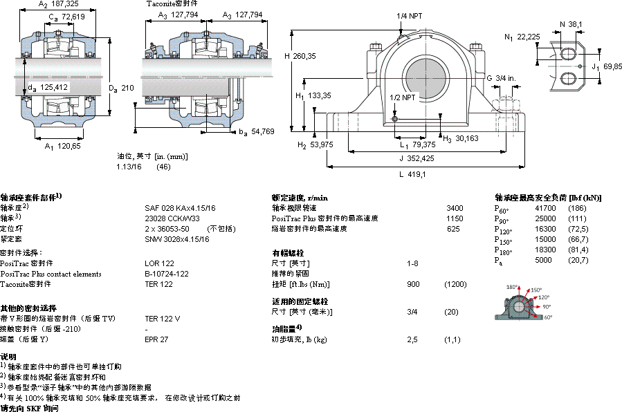 型号基本负荷额定值,主要数据尺寸迷宫密封件PosiTrac 密封件PosiTrac Plus密封件Taconite密封件