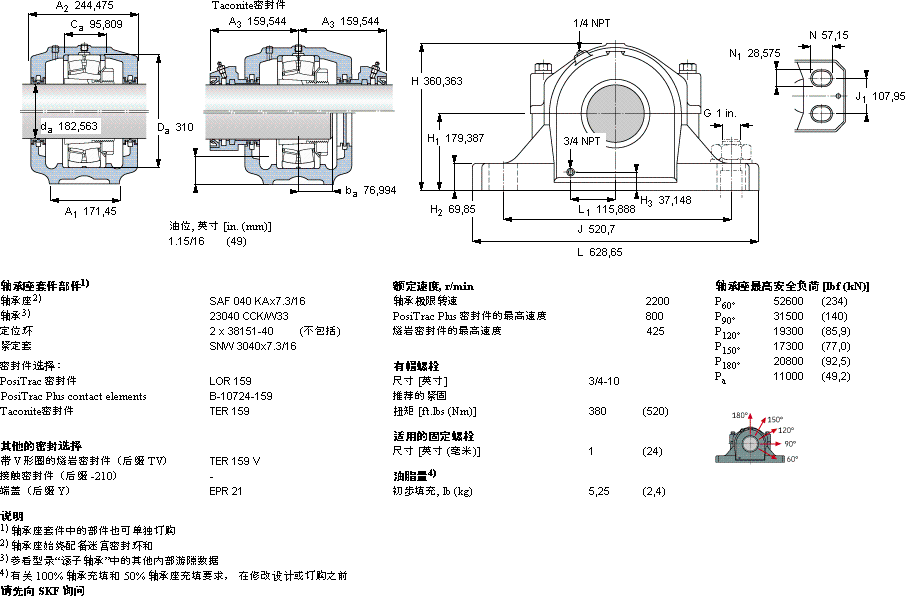 SKF SAF 23040 KAx7.3/16轴承详细信息