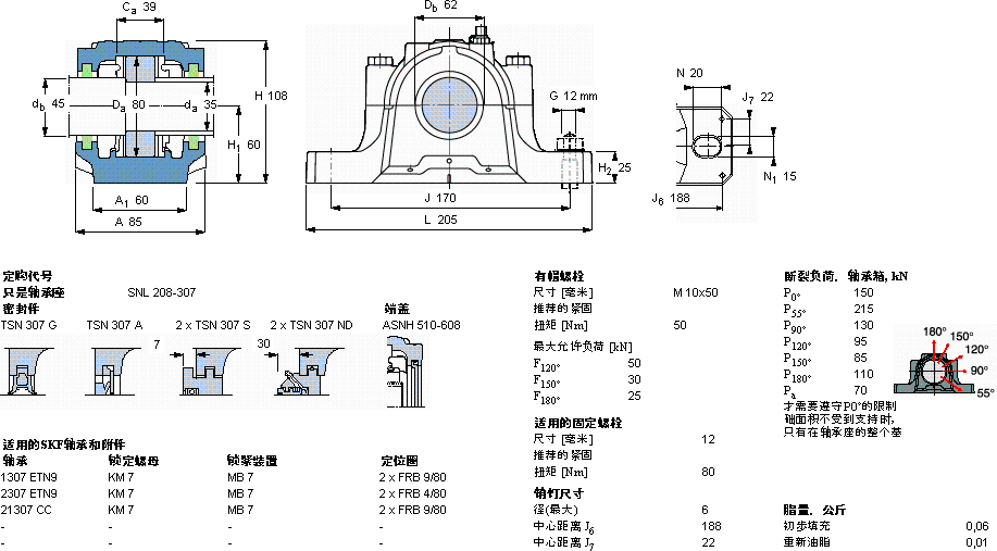 SNL 208-307轴承-SKF SNL 208-307轴承尺寸、图纸、价格