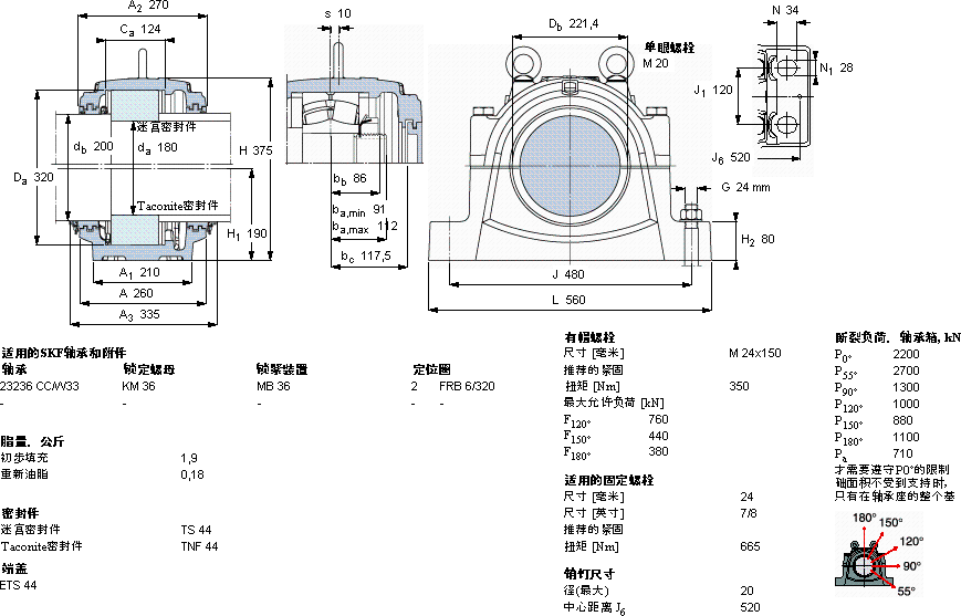 | 180 | 200 | 23236 | - | 260 | 560 | 375 | 190 | 97,5 | SNL 3236 G | TS 44 | TNF 44 | ETS 44 | |
