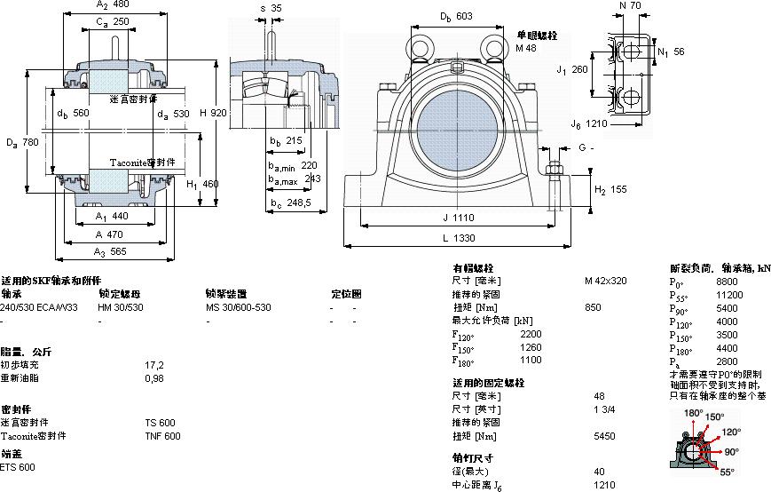 SNL 40/530 GF轴承-SKF SNL 40/530 GF轴承尺寸、图纸、价格