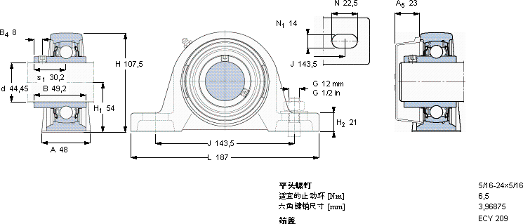 | 44,45 | 48 | 107,5 | 54 | 187 | 33,2 | 21,6 | 2400 | 2,3 | SY 1.3/4 TR | SY 509 M | YAR 209-112-2RF | |