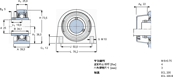 | 25 | 39,5 | 73,5 | 36,5 | 76,2 | 11,9 | 7,8 | 4300 | 0,32 | SYFL 25 TH | SYFL 505 | YAR 205-2RF/HV | |