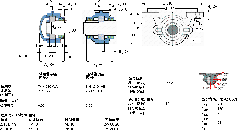 TVN 210 WA轴承是【SKF轴承 > 轴承座 > TVN立式轴承座组座】的型号,主要用在家用电器、空气压缩机、泵、大型农业机械、振动筛、汽车转向销、塔吊、化纤机械、掘进机、雷达等各大领域。