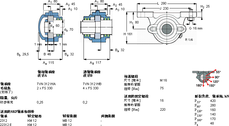 TVN 312 WA轴承-SKF TVN 312 WA轴承尺寸、图纸、价格
