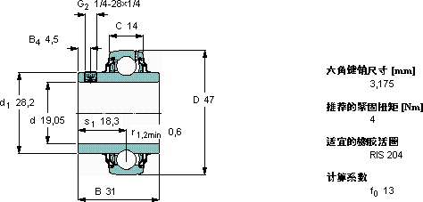 SKF YAR 204-012-2RF轴承尺寸图纸