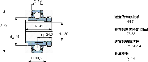 | 30 | 72 | 30,5 | 43 | 19 | 25,5 | 15,3 | 0,655 | 5300 | 0,47 | YSA 207-2FK | H 2307 | |