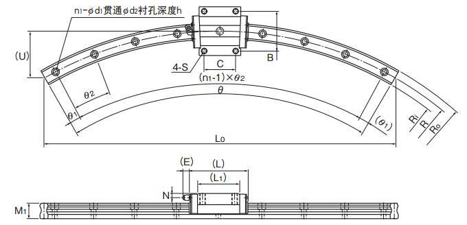 滑块尺寸L1(mm):38.8LM轨道半径(mm):150~400