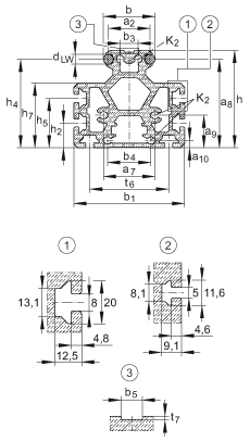 | N1 | 6,5 mm | 根据 DIN ISO 4762-8.8的固定螺栓。 |